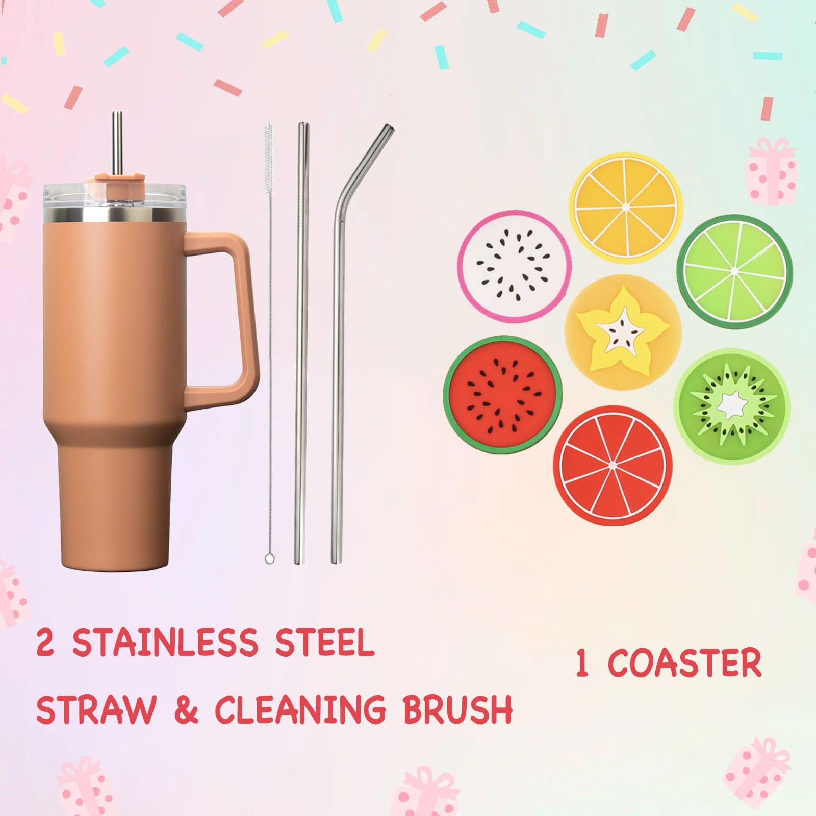 Combo 2 Stainless Steel Straw, Cleaning Brush & 1 Coaster