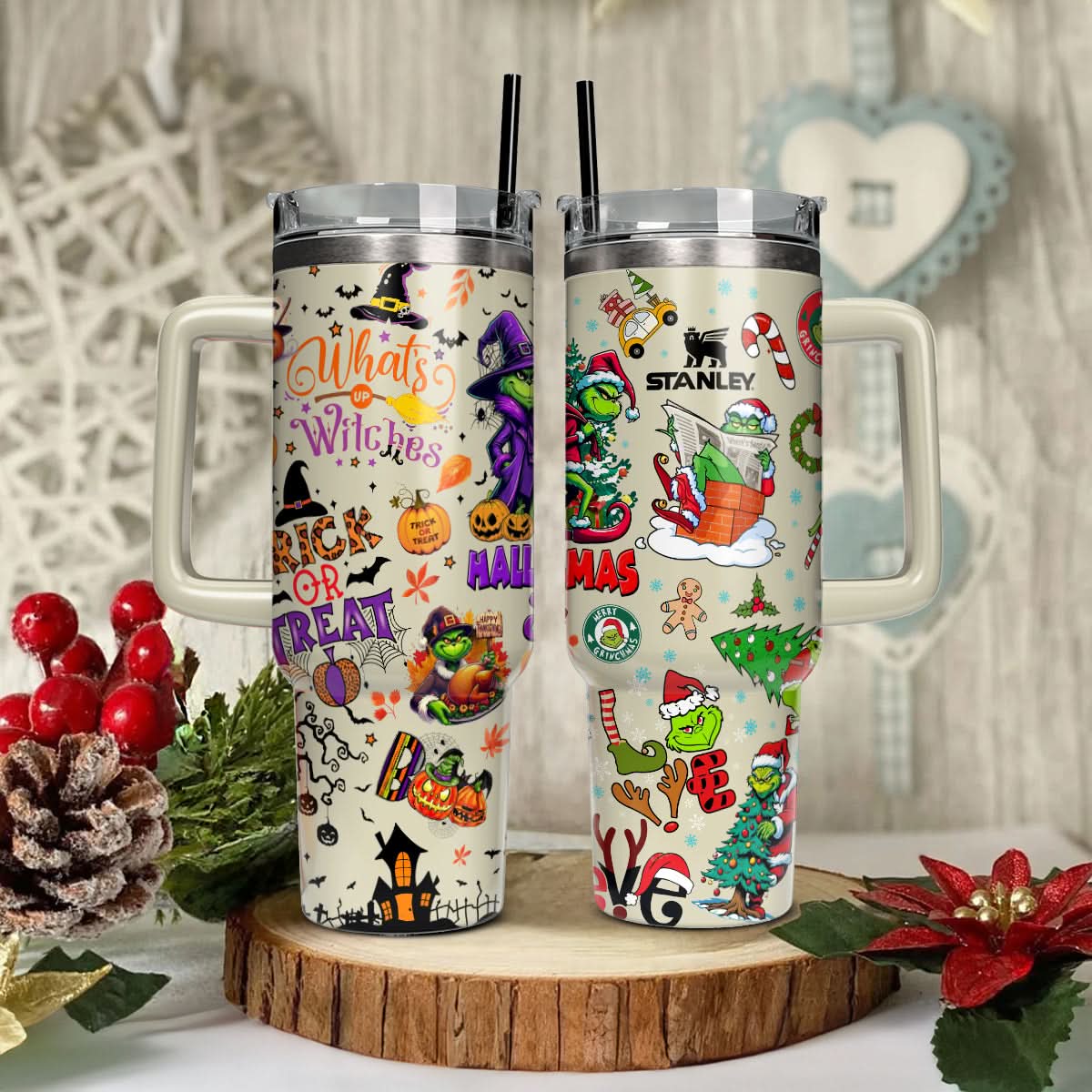 Custom Happy Hallothanksmas Grinch 40oz Tumbler - 410QAHNTB031